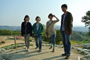 芝桜の中を歩くまめンバー