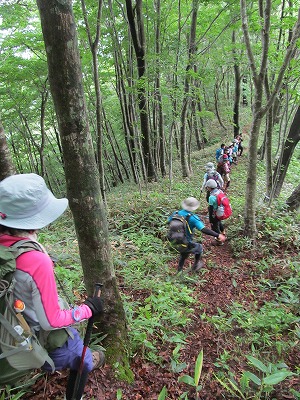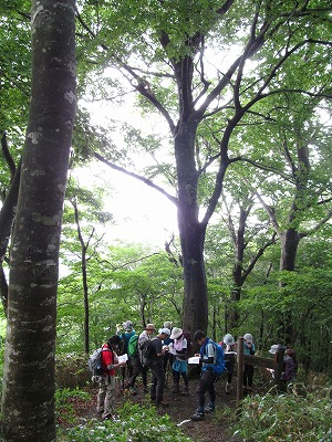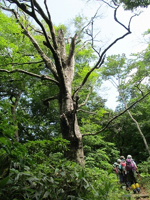 尾根に取り付くと、樹齢百年以上はあろうかというブナの巨木があちこちに現れます。