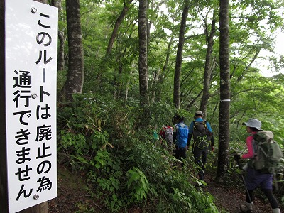 やがてBコースとの合流点へ。 分岐には「コース廃止」の表示がありました。 あれれーっ?