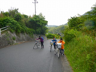 吉海レンタサイクルターミナルでママチャリをレンタルし、いよいよ旅のスタートを切った4人の豆塾生。