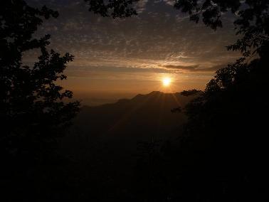 さて、ヘッドランプの明かりを頼りによく整備された登山道を歩いていくと、4時半頃に御来光となった。