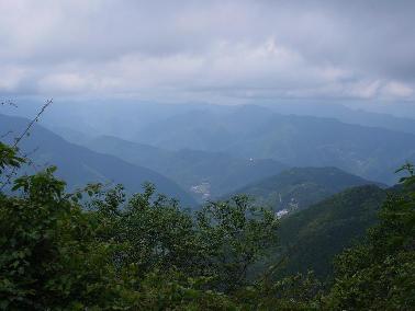 4時50分、地蔵峠に到着。ここから登山ルートは稜線に出るが、相変わらず樹林帯歩きが続く。ガスが多いため、樹木の切れ間から見える眺望はほとんど無い。頂上に着く頃には気温が上昇してガスが取れることを祈る。