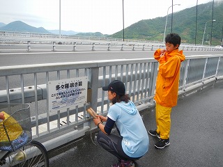 橋の途中でこの橋の名物「多々羅鳴き龍」発見。