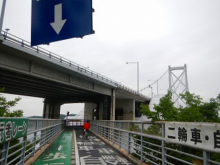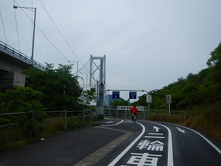 因島に繋がる生口橋へとスロープを上がる。