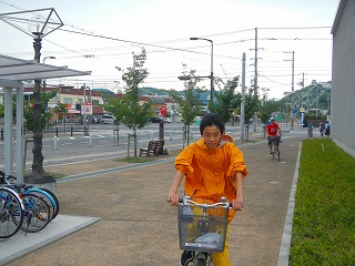 ロ 「ステキなチャリだなぁ~オレもひとみさんのように風を感じてみたいなぁ。」
