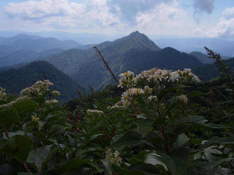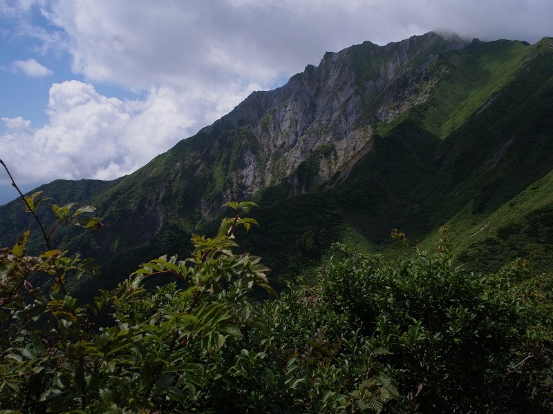 どうにか振子山を登りきると、美しい景色が我々を癒してくれた。荒々しい大山南壁。優美な三鉾峰。可愛らしい烏ヶ山。