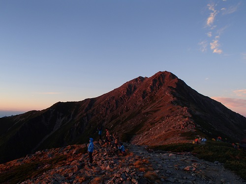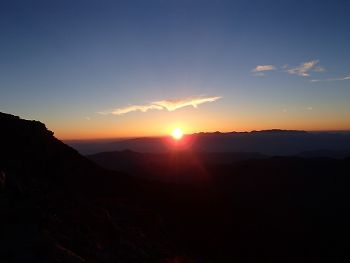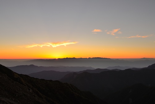 そしてしばらく難民キャンプで寒い思いをした小屋泊メンバーは、北岳でのご来光はもういいや・・・ここからの景色で十分と
