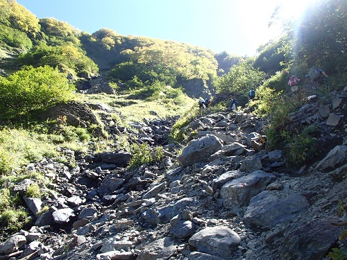 7時半に出発し間ノ岳を往復しますその後山荘でハード組と合流して北岳へ行きます