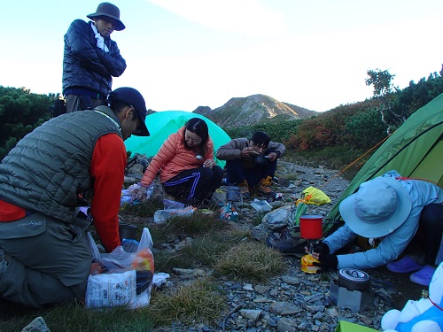 一方、テント泊のまめンバー+自炊の小屋泊まめメンバーは