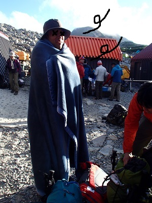 山荘の方から毛布が与えられ、身を寄せ合って寒さをしのぐ