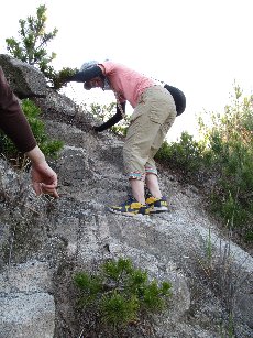 岩場の風化が激しく、つかむ岩つかむ岩どれもボロボロ、ボコボコ