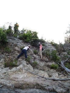 しばらく遊んで満足したのか、ようやく山にとりつきます。