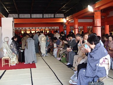 本殿の周囲には、どんどんと着物姿の奥様たちが集結してきます。