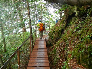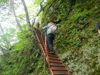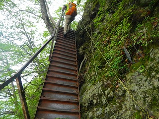 ヘビーな彼がこのハシゴを壊せば後続は道を絶たれてしまう。