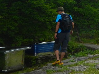 すごすごと元の丸滝小屋に戻る祭人たち。