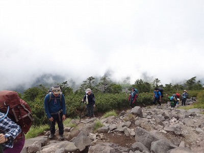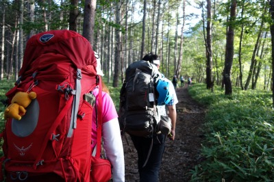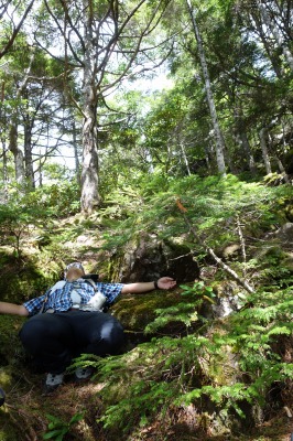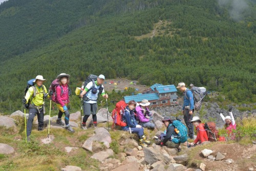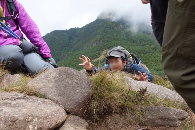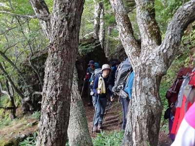 容赦なく続く急登に、もうへばり気味のリーダー。まだ初日の序盤ですよ~