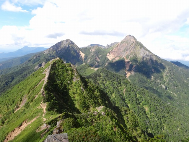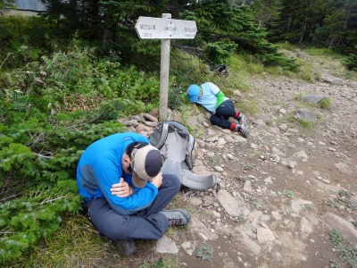 編笠山をあとにして、青年小屋への急坂をだだだっと下ります。