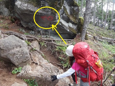 小屋の手前は予習した通り、でっかい岩ゴロの道です。