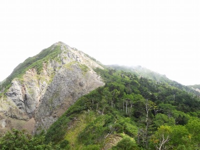 稜線まで上がると、三ッ頭方面に少し外れたところに特徴的なピークが見えます。