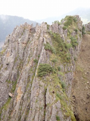 登山道の左手に聳えるスゴイ岩壁…大迫力!