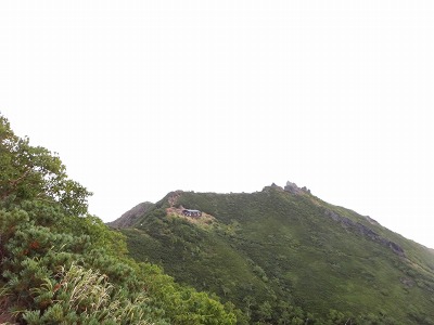 とうとう権現岳が視線の高さまで! 肩に建つ権現小屋も見えます。