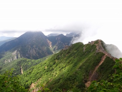 権現岳からの急な下りを終えると、