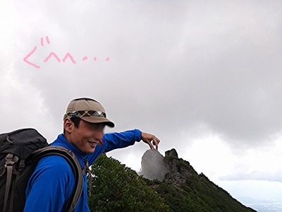 山頂にはまだガスがかかってますが、これから歩く稜線を見るとテンションも最高潮!