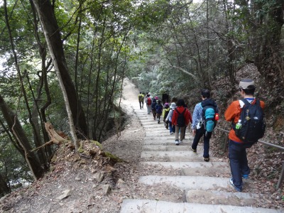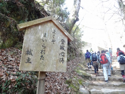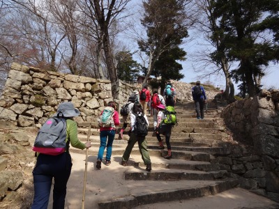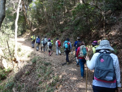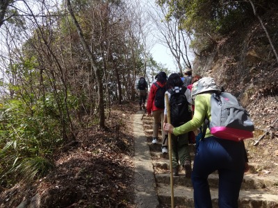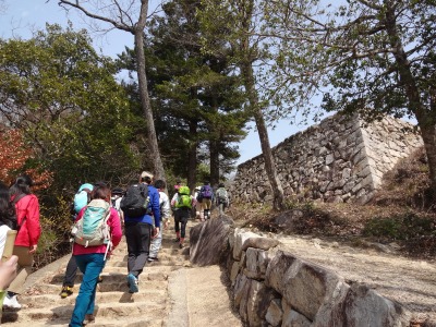 ぽかぽか陽気の中、全軍一列になって間道を攻め上がる。