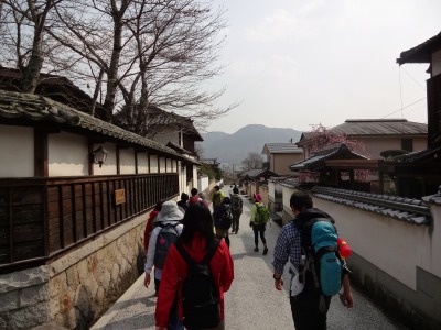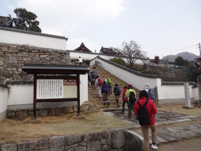 武家屋敷が立ち並ぶ高梁の町を、意気揚々と引き揚げる一同。