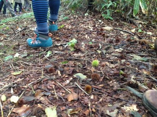 足元には栗やきのこがいっぱい。 秋も近づいてまいりましたね。