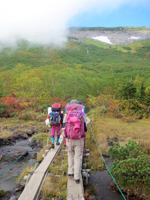 サル班、お昼は後回しにしてみんなと白馬大池まで歩いていきます。