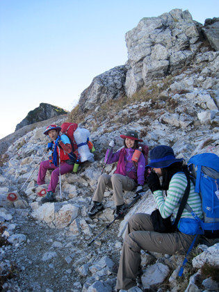 おかちゃん班 → 小蓮華に向かう途中で睡魔に襲われ、道の途中で昼寝、5時に宿舎到着