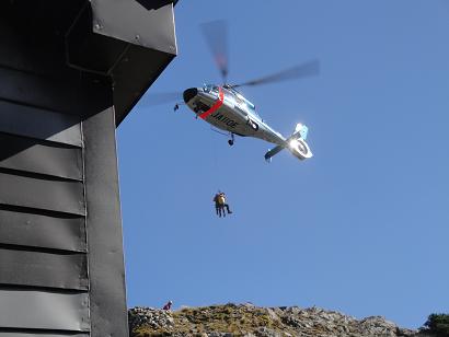 着陸スペースが無いので、一度救助隊員が降下