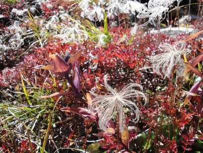草紅葉の中のチングルマのヒゲ