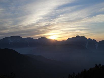 剱岳の向こうに沈む夕日