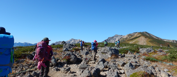 杓子岳で真ん中だったまっちゃんも今度は端っこで頑張ります。