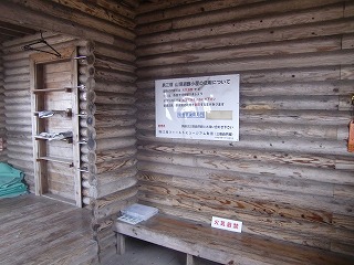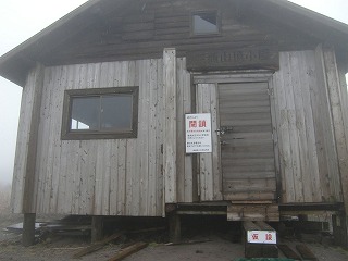 男三瓶山頂小屋は閉鎖中。だが近づいてみると鍵は掛かっていない。