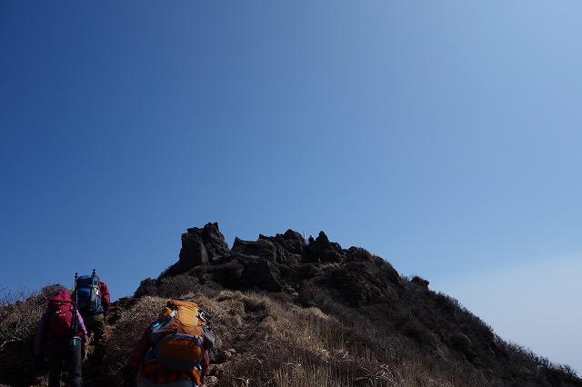 岩の急登をえっちらおっちら登っていくといよいよ山頂が見えてきた。