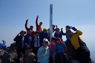 縦走隊と山頂で合流し、登頂写真を撮る。