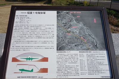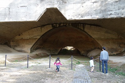 せっかく来たので近くの掩体壕(えんたいごう、太平洋戦争時、築地海軍航空隊が軍用機を敵の空襲から守るために作られた格納庫)だけ押さえときました。