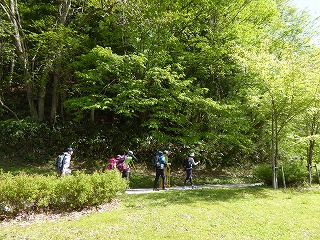 登山口でハード班とはお別れです、あっという間に見えなくなりました。