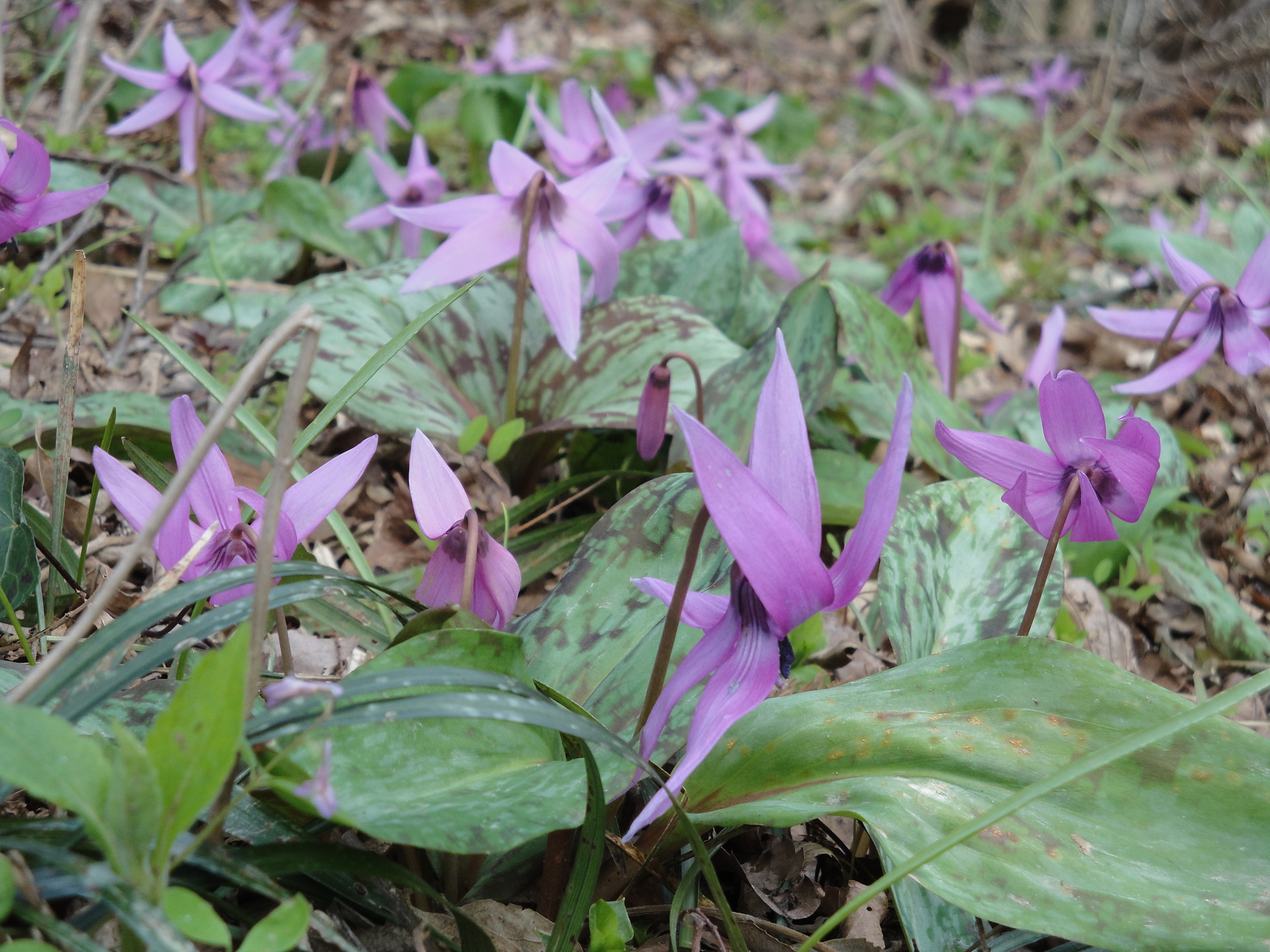 丁度カタクリが見頃を迎えていました。しかし、この花は下から撮らないと美しくない・・・。