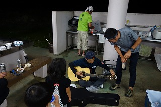 日が暮れるとミミックによる弾き語りも始まった。