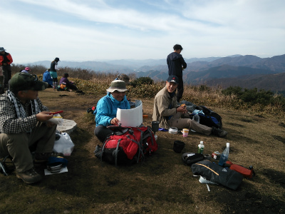 360°パノラマの最高ロケーションで各自用意したお弁当をパクリ