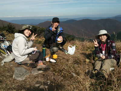 岡山からは雨で登山ができなかった福井企画のリベンジをしたいまっちゃん、カメラ目線を忘れないキャサリンさん