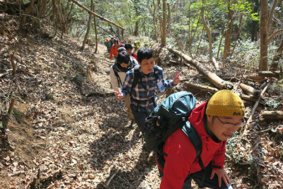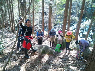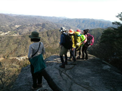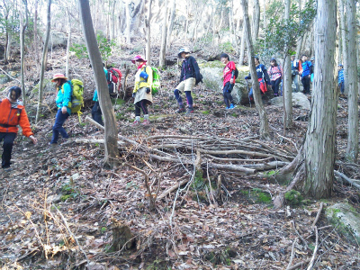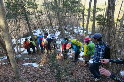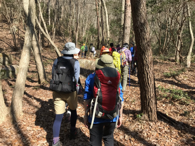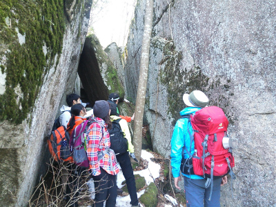 昼食を終え、寄り道ポイントの ぬすっと岩 へ向かうまめ登山部一行