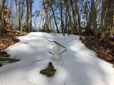 少し雪が残っていたので シュガー氏 が可愛い雪だるまを作ってくれました