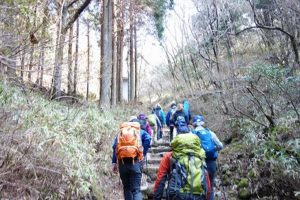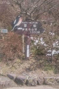 まずは、ロープウェイ広場に到着!他の観光客の方もたくさんいました。ここから妙見岳に登り、山頂付近の妙見神社で登山の無事をみんなで祈願しました。