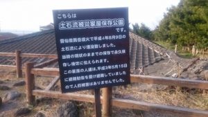 施設が開いてなかったので一行は展望台で朝食後、「土石流被災家屋保存公園」を見学。