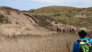 山頂付近は緩やかな地形になっており、秋にはススキの草原が広がる。